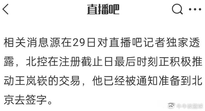 这个休赛期,北控男篮一直都希望得到王岚嵚,辽宁男篮一度也是有过犹豫,毕竟还是希望去冲击总冠军。
